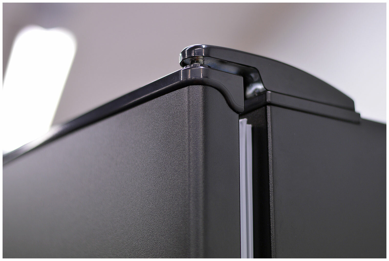 Черный матовый цвет краски неплохого качества. Смотрится хорошо. В дополнение к 3-м ящикам морозильной камеры есть мелкий ящик для заморозки ягод и чего угодно. Удобный ящик в холодильном отделении. Удачно расположенная яркая лампа освещения. Сзади ролики, спереди регулируемые опоры. |