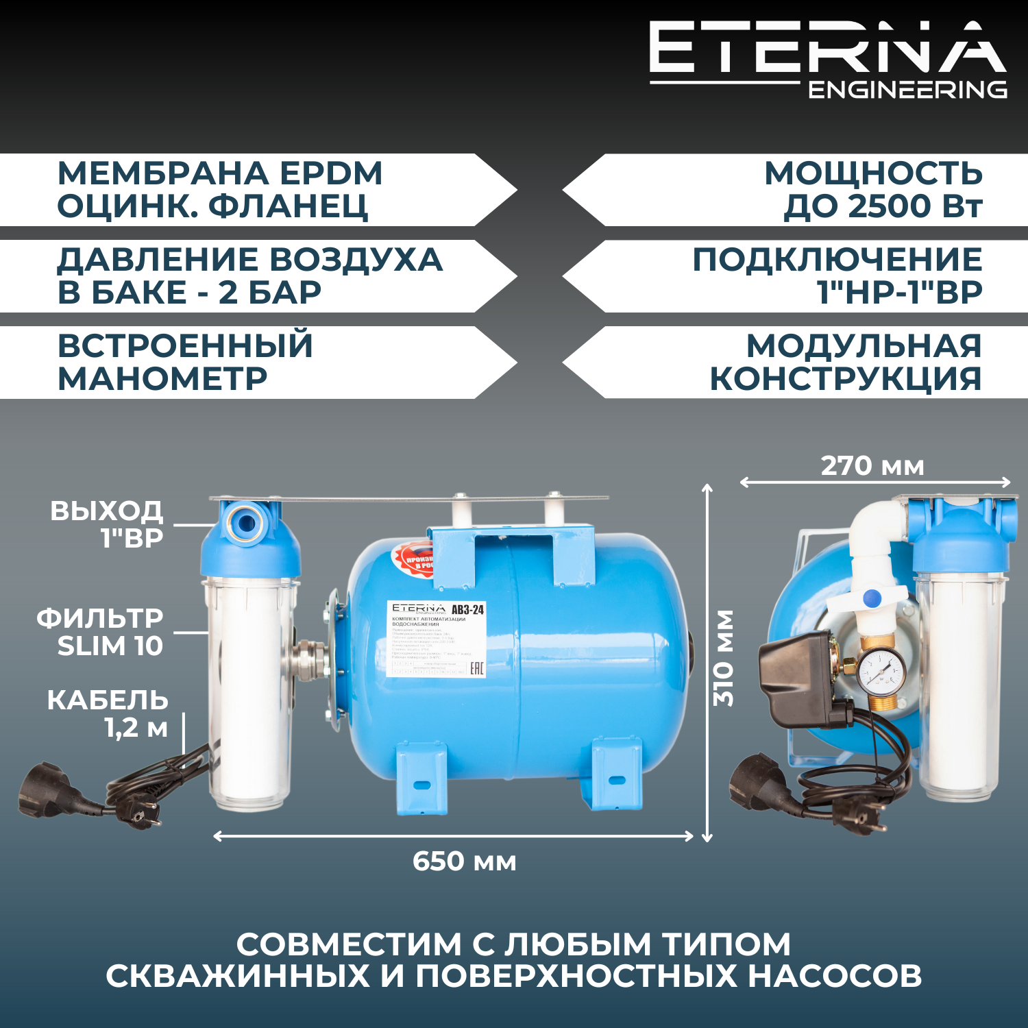Гидроаккумулятор в сборе с автоматикой ETERNA АвтоБак АВ3-24 (24 л, горизонтальный) интересное: