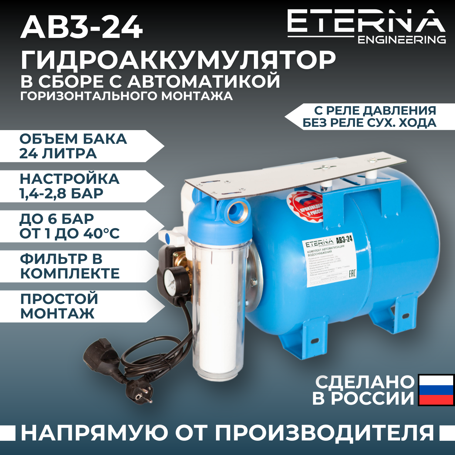Купить Гидроаккумулятор в сборе с автоматикой ETERNA АвтоБак АВ3-24 (24 л, горизонтальный)