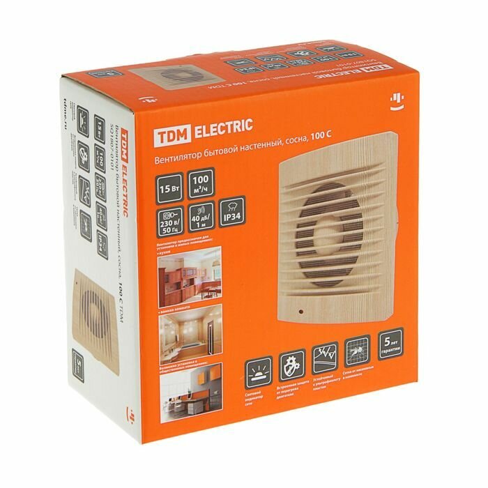 Вентилятор бытовой настенный, сосна, 100 С TDM