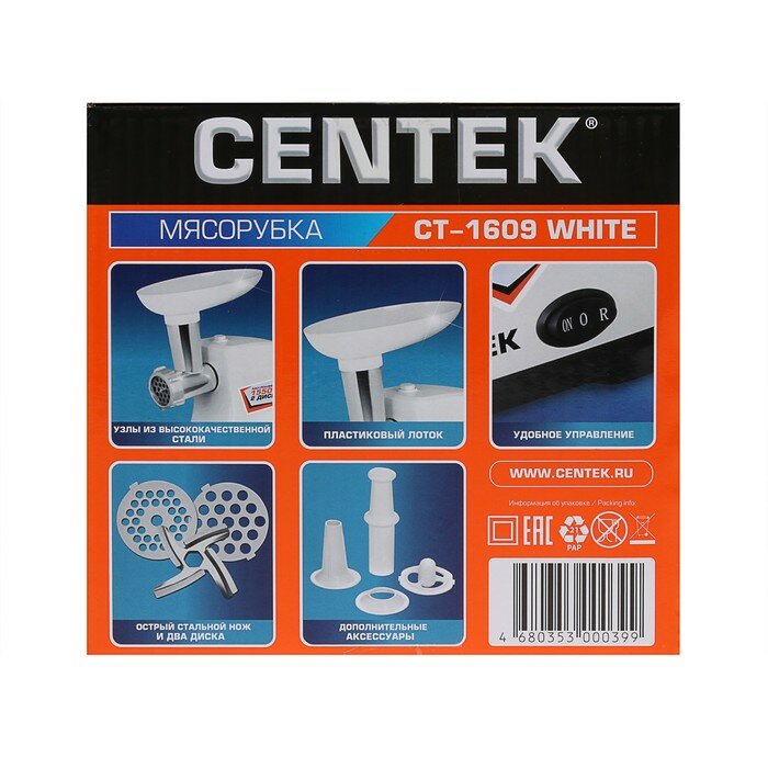 Мясорубка CENTEK CT-1609, белый (CT-1609 WHITE)