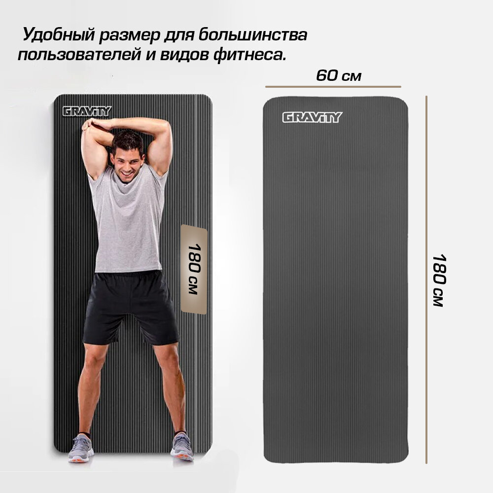 Коврик для фитнеса Gravity 180х60х1,5 см, черный интересное: