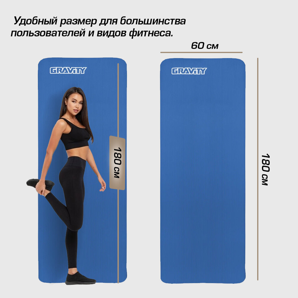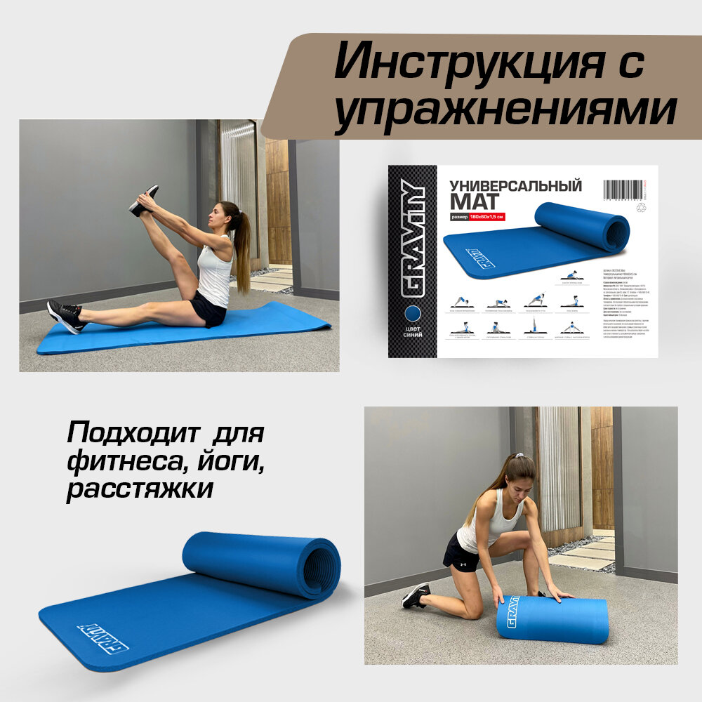 Коврик для фитнеса Gravity 180х60х1,5 см, синий интересное: