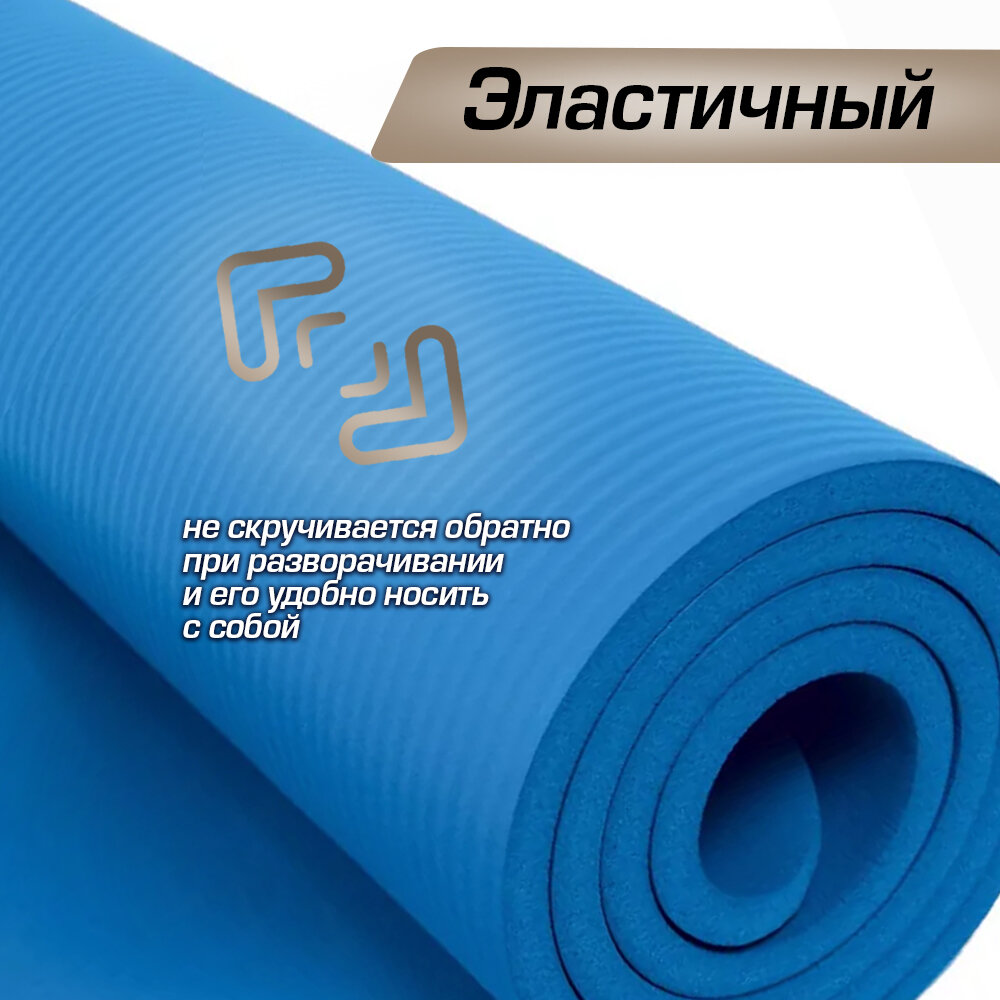 | Плюсы: | Не скользит, толстый, упругий. Оптимальный по длине ширине, есть резинка для переноски на плече |