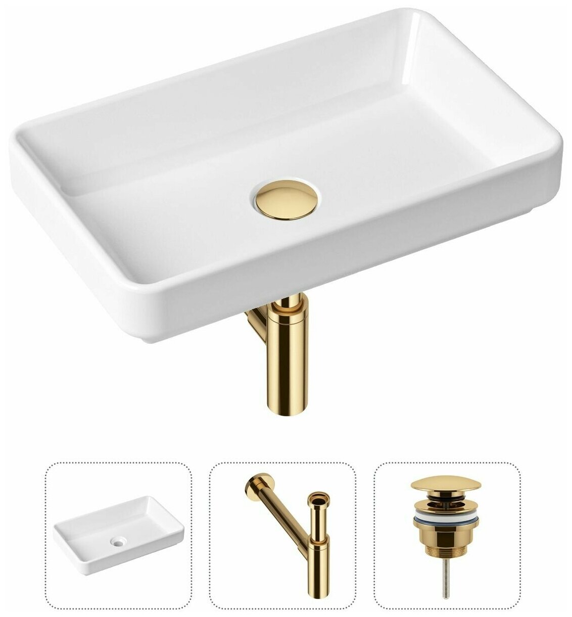 Купить Комплект 3 в 1 Lavinia Boho Bathroom Sink 21520148: накладная фарфоровая раковина 55 см, металлический сифон, донный клапан