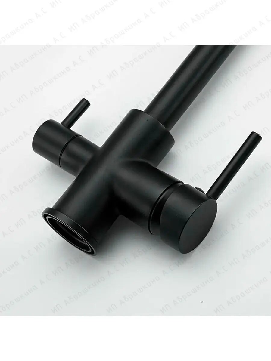 FRUD R43053-7, Смеситель для кухонной мойки под фильтр с краном для питьевой воды (поворотный излив, латунь, чёрный)