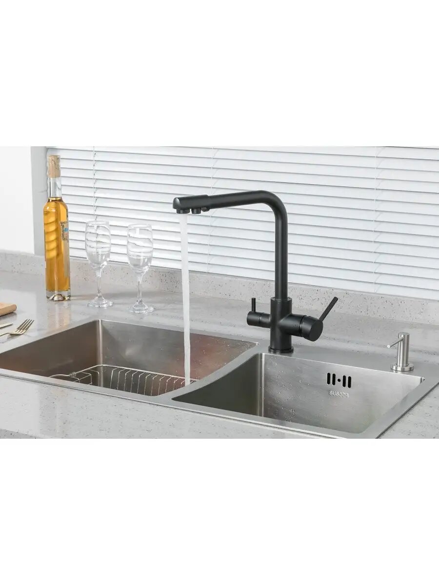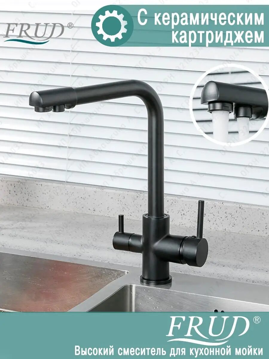 Кухонный смеситель FRUD R43053-7 с картриджем, с подключением к фильтру, черный