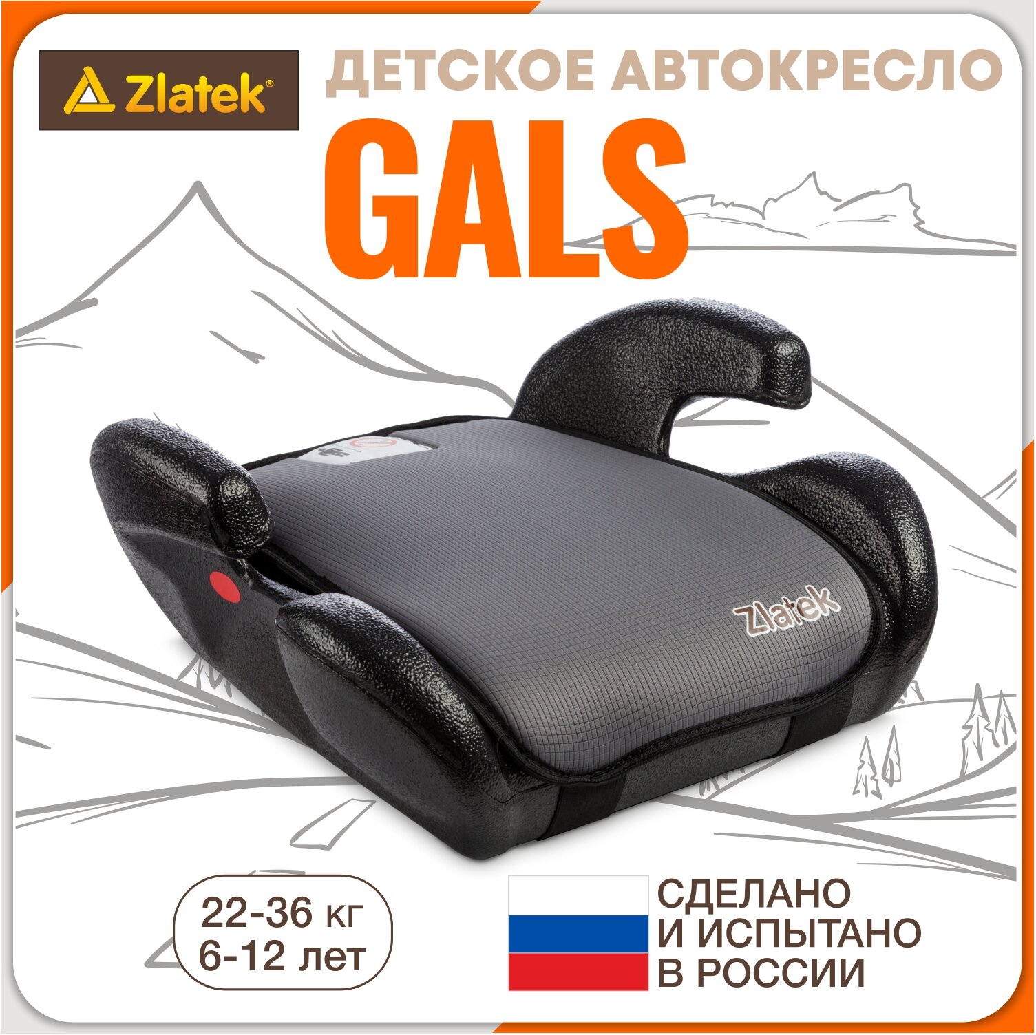 Бустер автомобильный Zlatek Gals от 22 до 36 кг, серый
