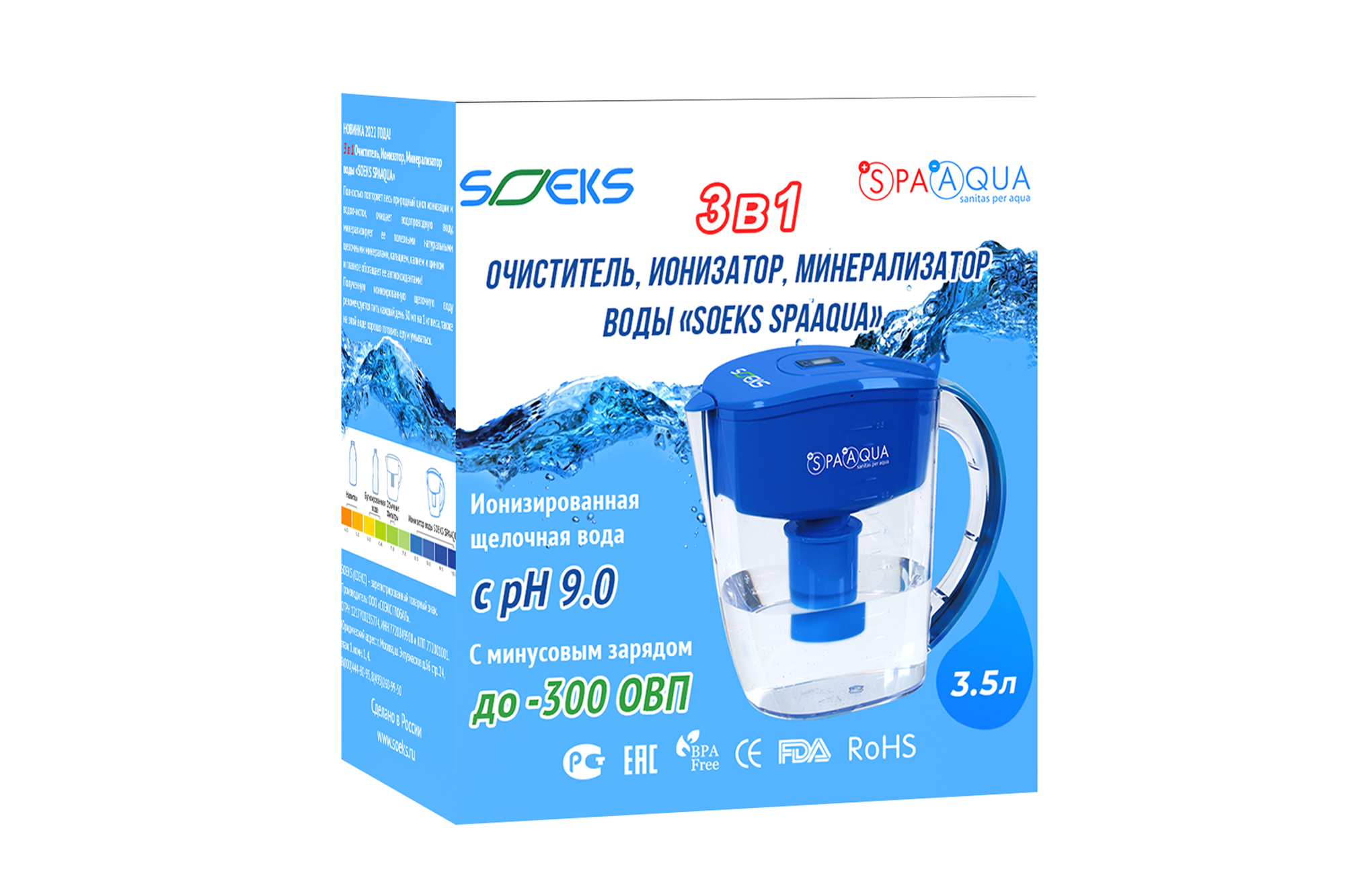Очиститель, ионизатор, минерализатор воды СОЭКС SPAAQUA (кувшин-фильтр, 1 сменный картридж) интересное: