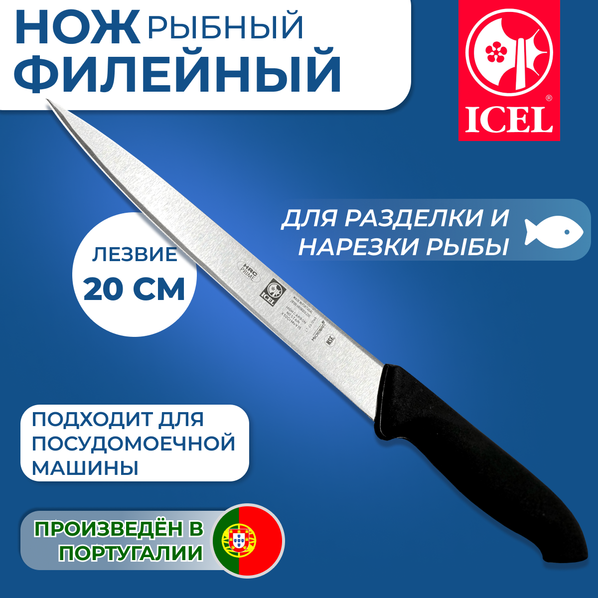 Нож ICEL филейный рыбный, лезвие 20 см, ручка с антибактериальной защитой Microban. интересное: