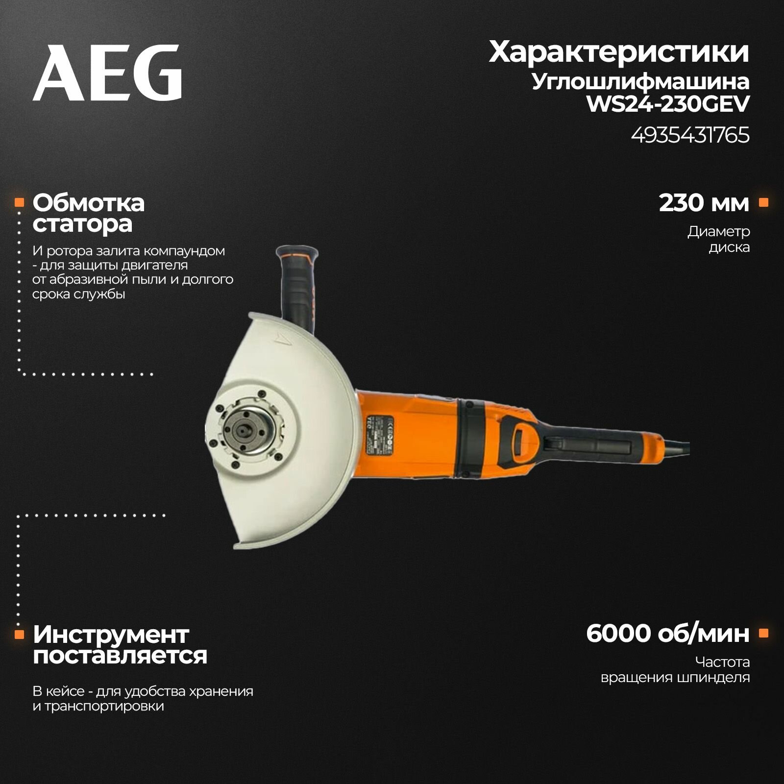Угловая шлифмашина AEG WS24-230GEV 4935431765 интересное: