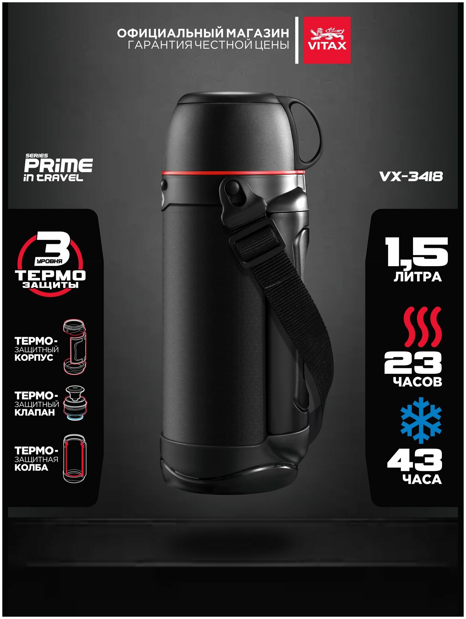 СохранитьУниверсальный термос Vitax VX-3418 Prime in travel 1500мл интересное: