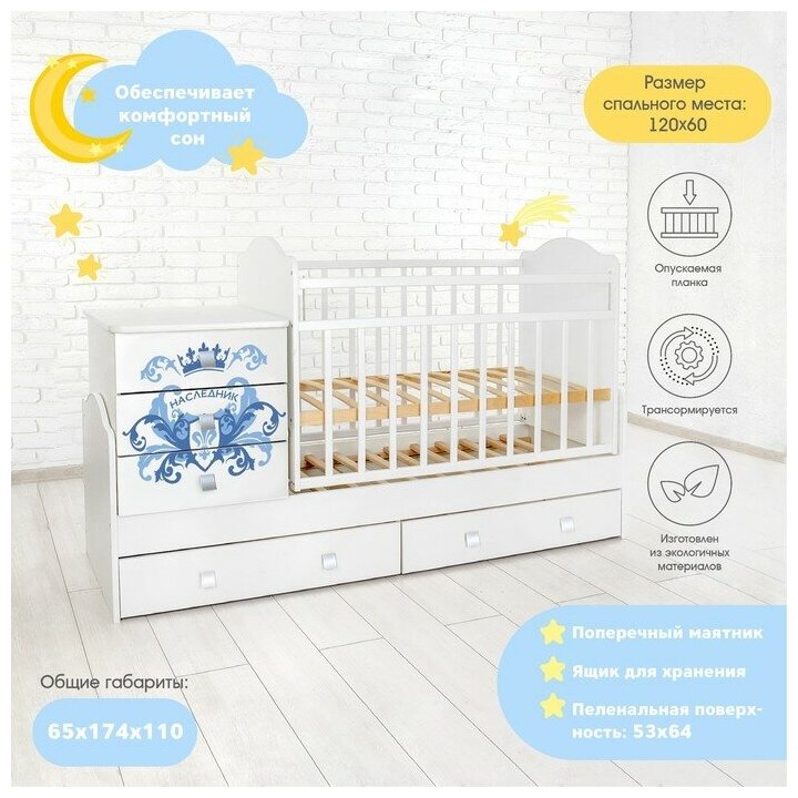 ВДК Детская кровать-трансформер «Наследник» с поперечным маятником, цвет белый интересное:
