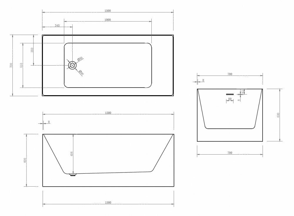 Купить Акриловая ванна Abber AB9274-1.5 150х70