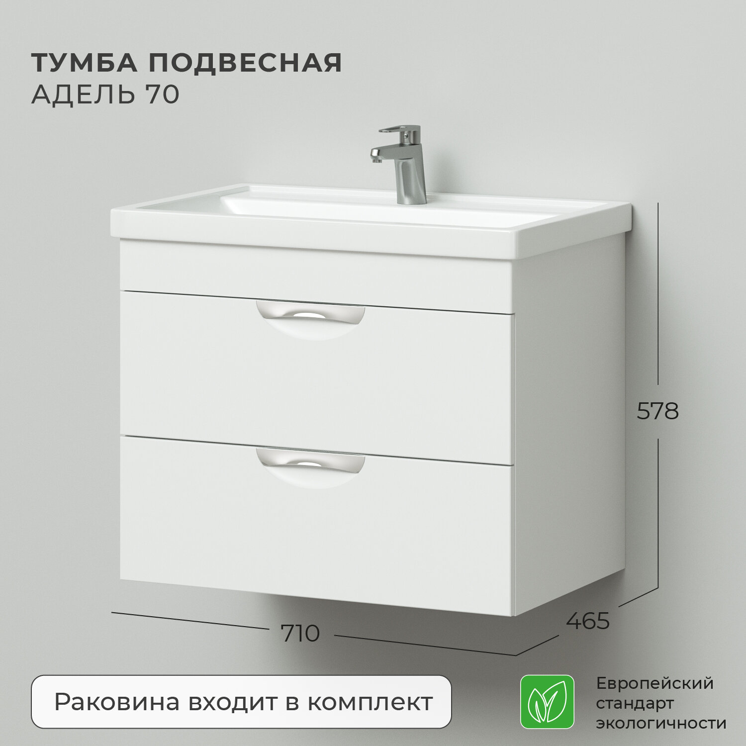 Тумба с раковиной подвесная IKA Адель 70 710х465х570 интересное:
