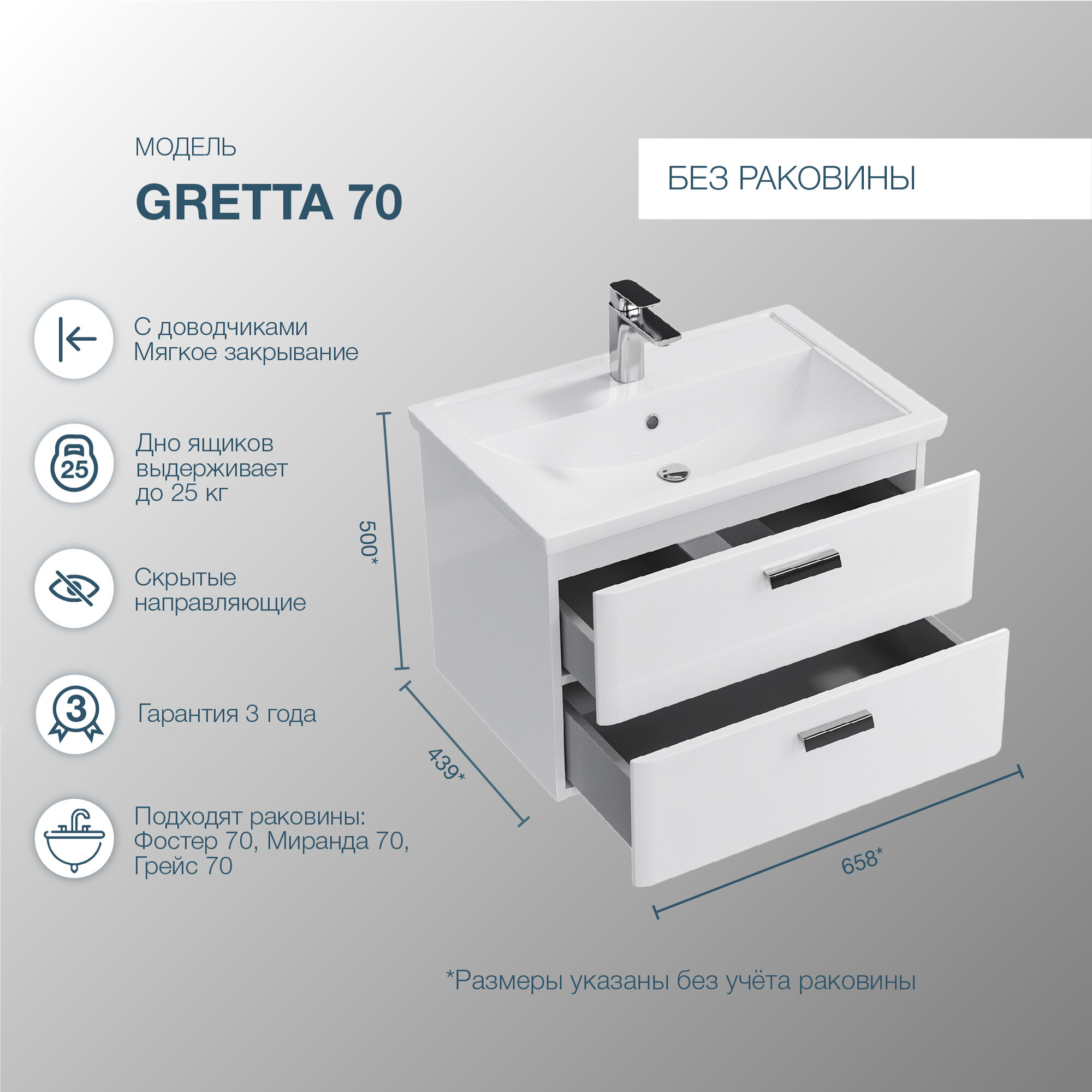 Тумба подвесная SanStar Gretta 70 Без раковины для ванной комнаты, белая интересное:
