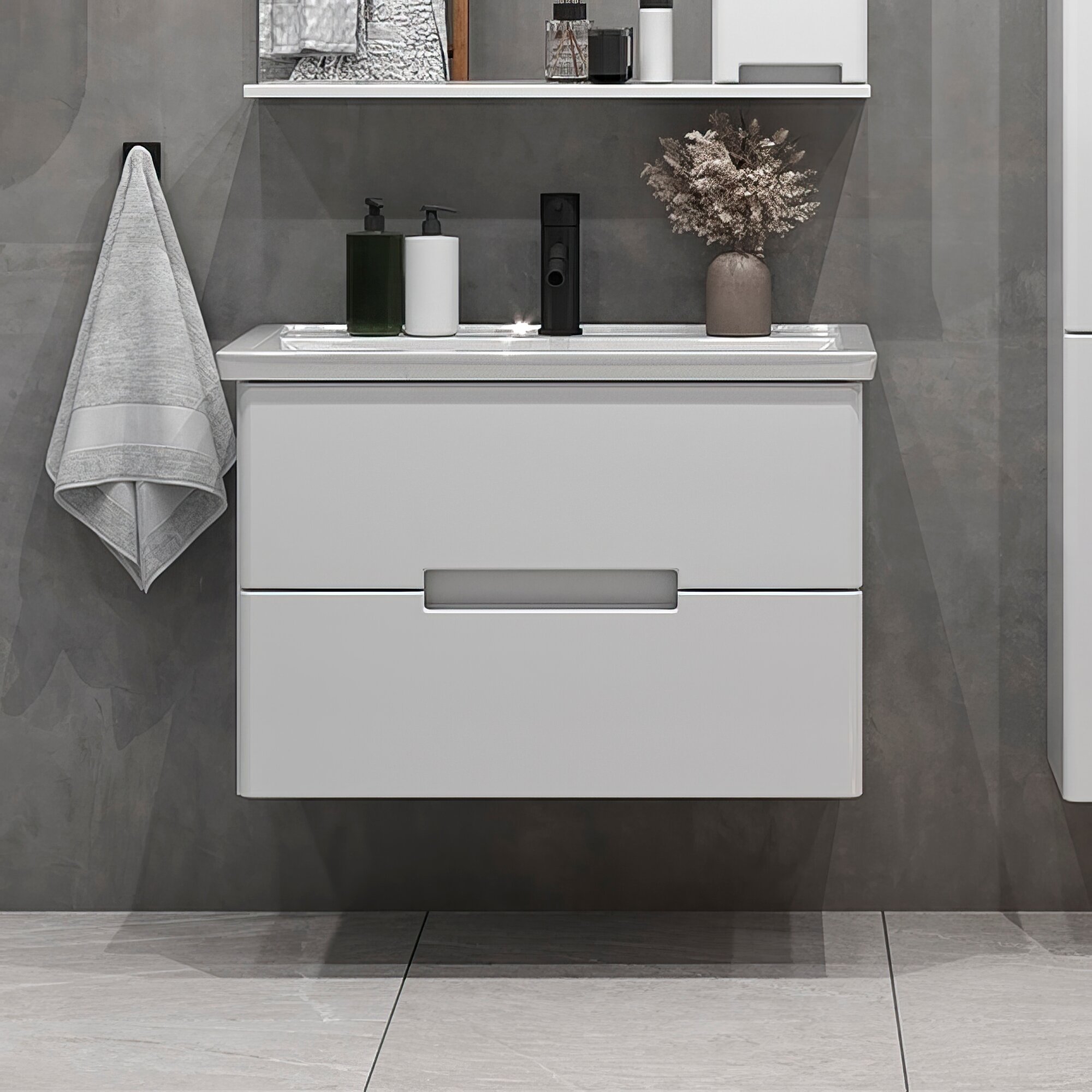 Тумба-умывальник Comforty Осло 80 бетон светлый с раковиной Fest 80