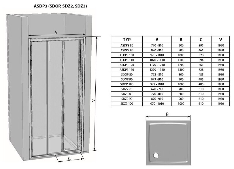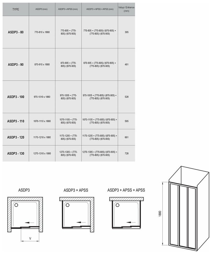 Душевая дверь Ravak ASDP3-110 198 белый + Транспарент