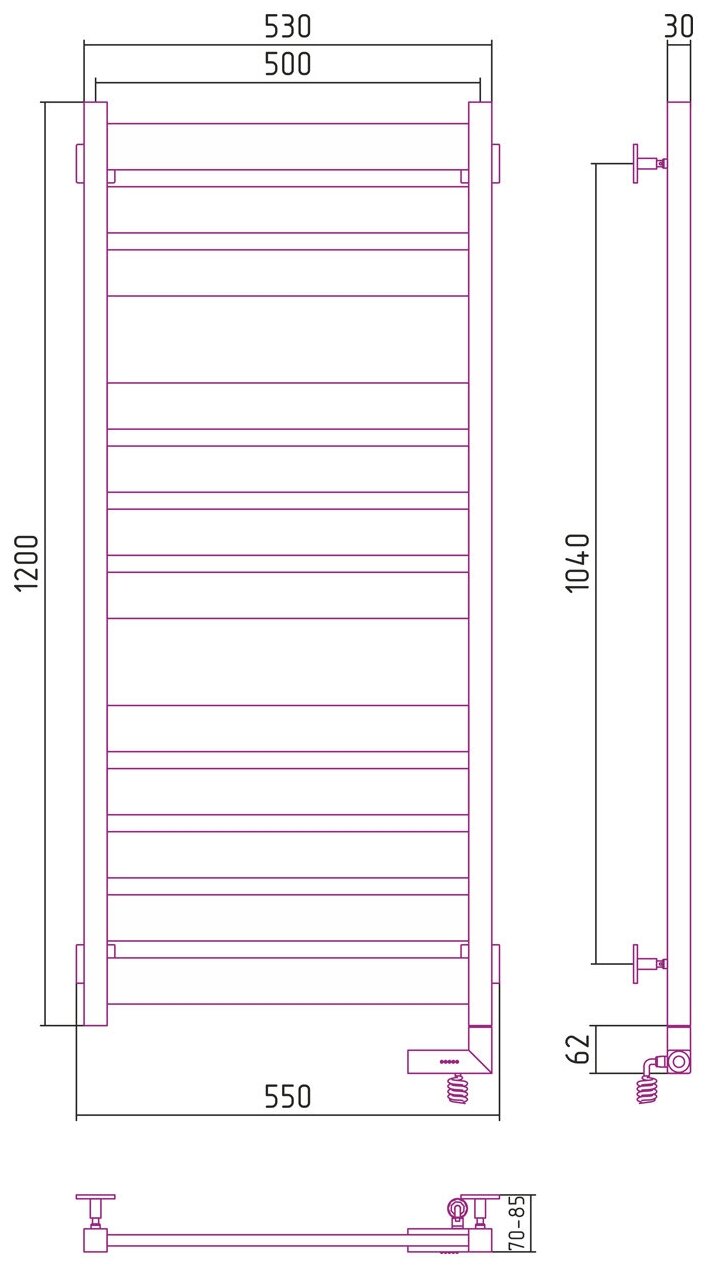 Полотенцесушитель Электрический Тругор Пэк сп 5 П 60х50 черный ВГП