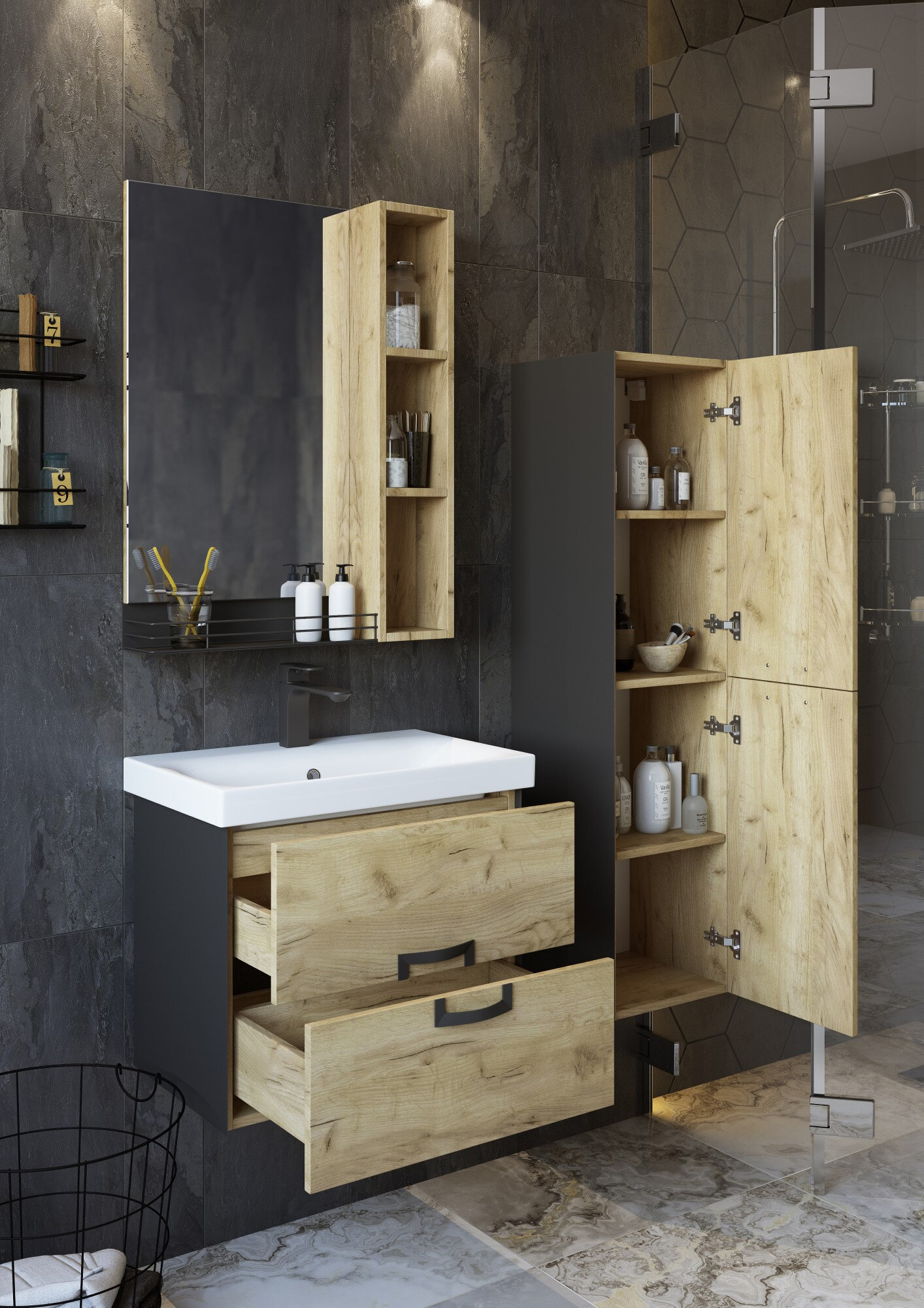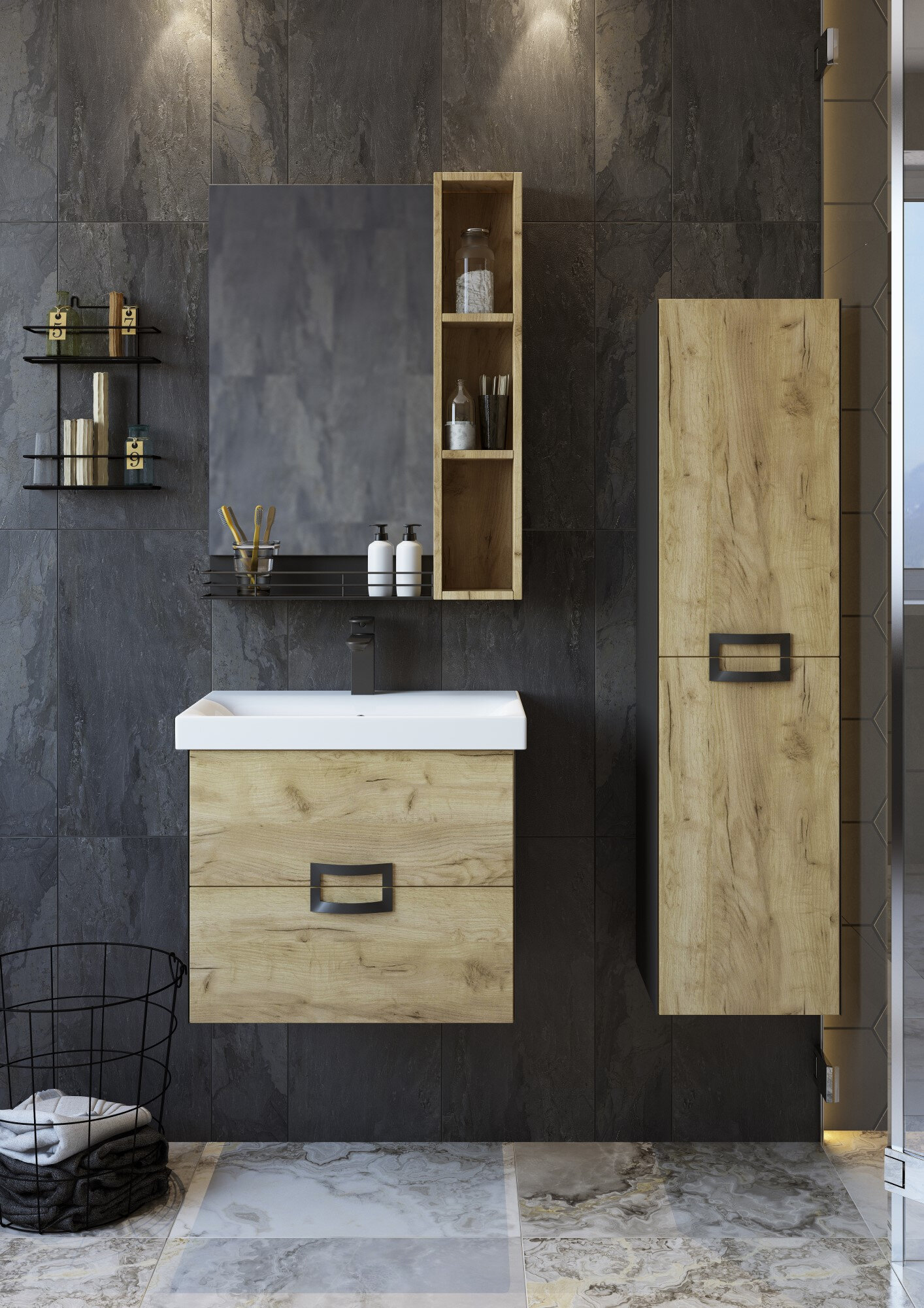 Тумба с раковиной Sanflor Выборг 60 подвесная, дуб крафт золотой интересное: