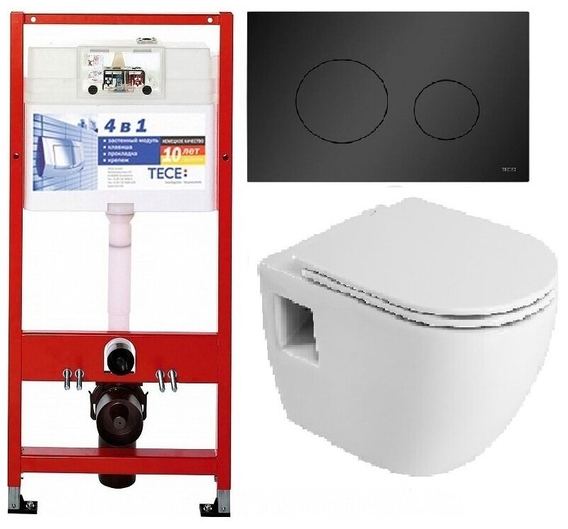 Купить Комплект инсталляции для унитаза TECEbase 2.0 с чёрной панелью смыва TECEloop k440925 + унитаз подвесной CEZARES ECO CZR-526-TH-R/2040SC
