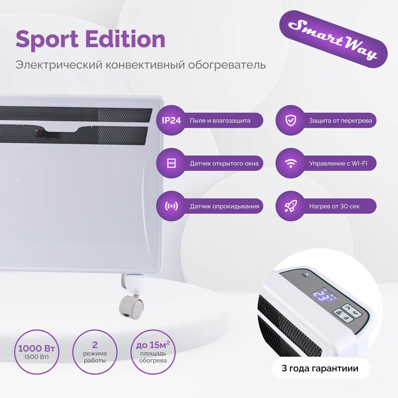 СохранитьКонвектор Smartway 1000W Digital Smart Wi-Fi серия SPORT Edition интересное: