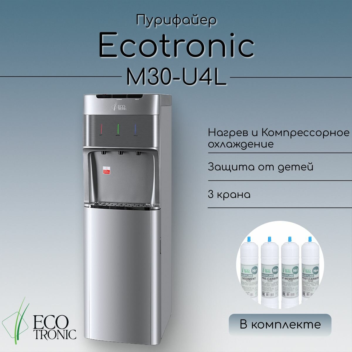 Напольный пурифайер ECOTRONIC M30-U4L silver-ss с тремя клавишами подачи воды