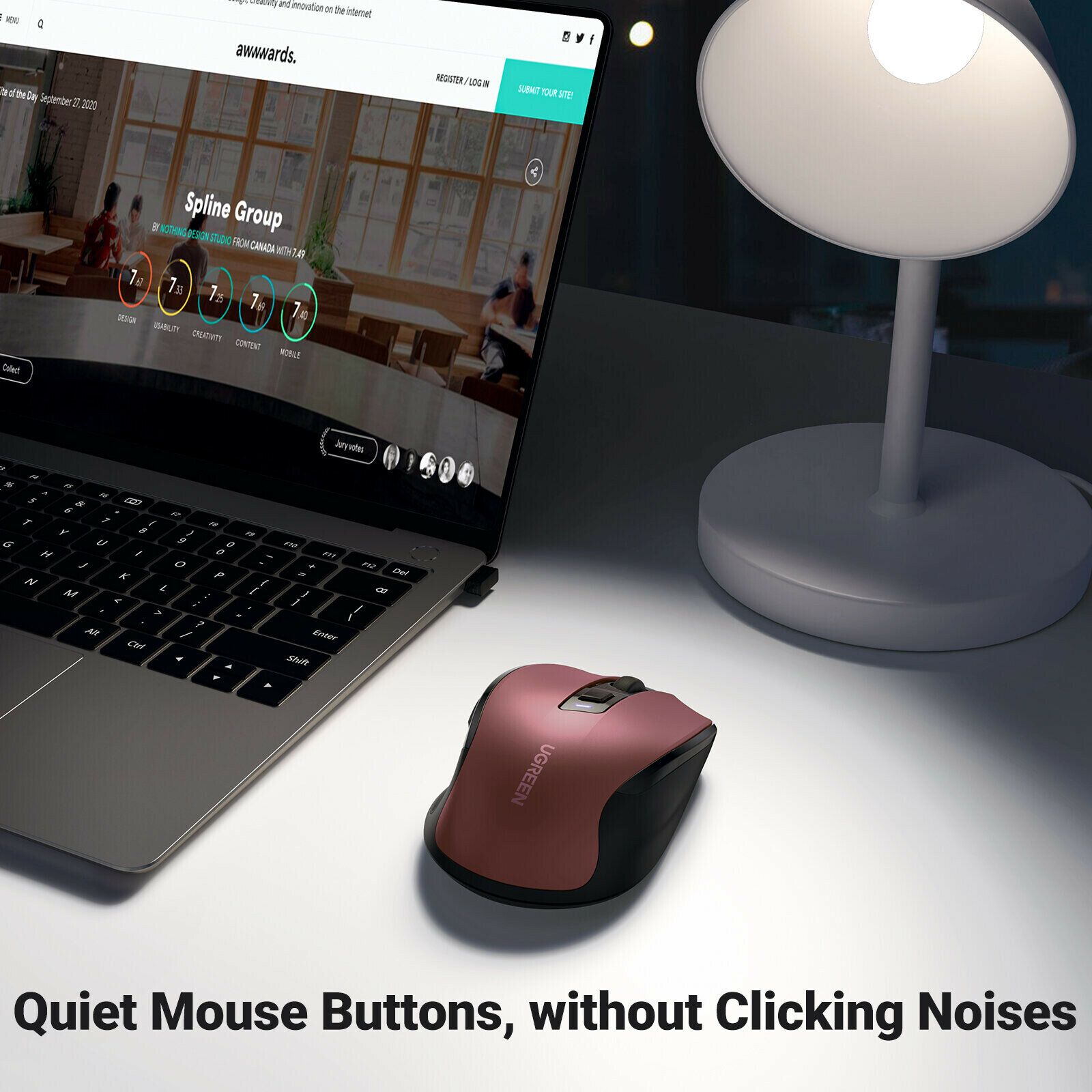 Мышь беспроводная Ugreen MU006 (25752), 2.4G 4000DPI, 2.4 GHz, красный