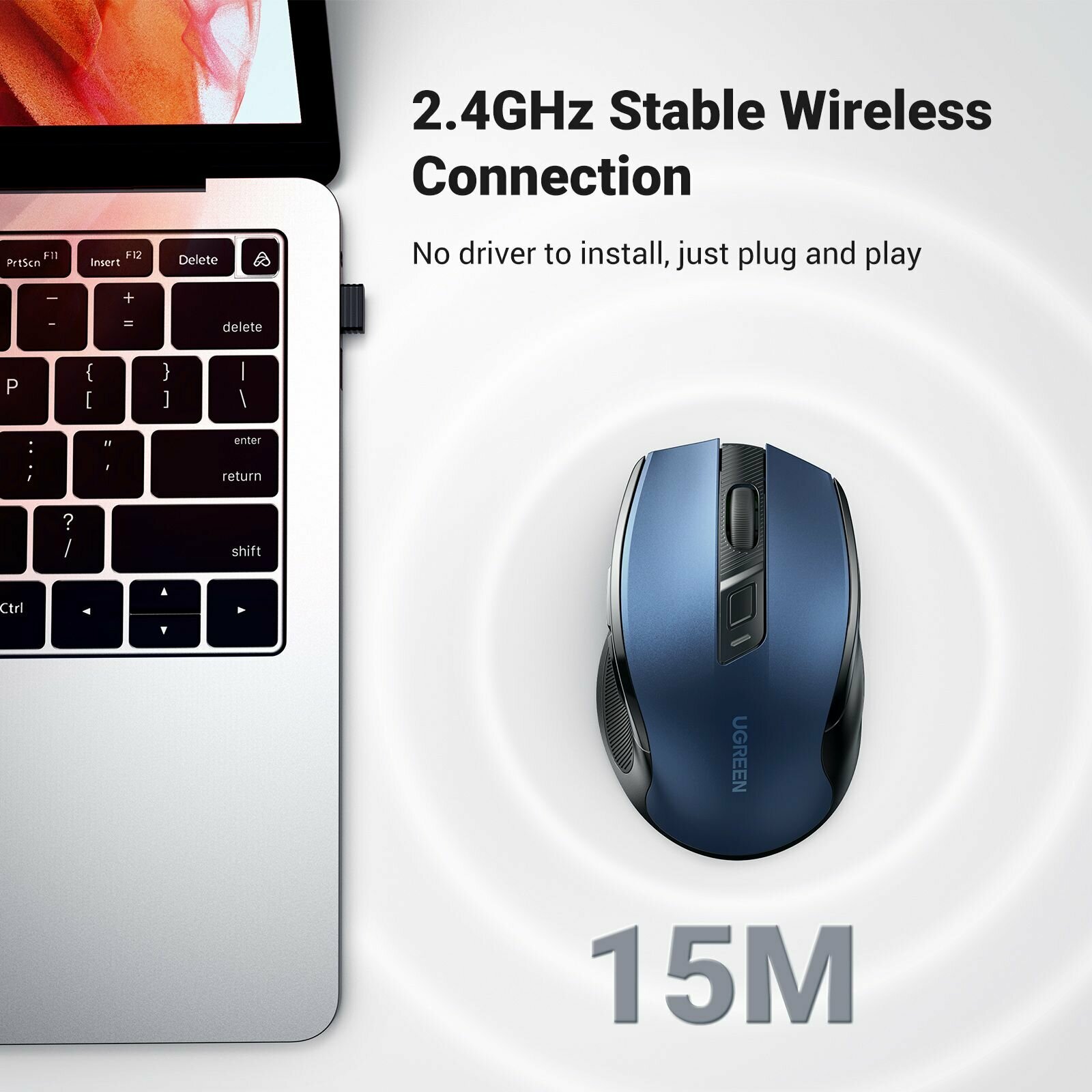 Мышь беспроводная Ugreen MU006 (15064), 2.4G 4000DPI, синий