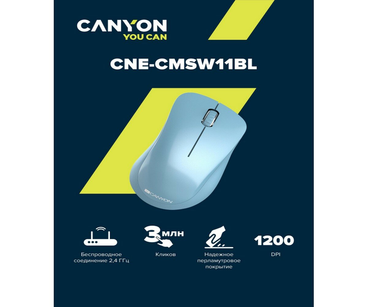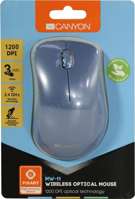 Мышь Canyon Mw-11, беспроводная, оптическая, 1200 dpi, Usb, 2xAAА, синяя Canyon 9646115 .