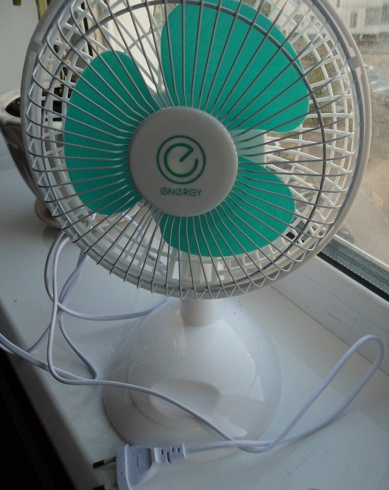 | Плюсы: | Неплохой настольный вентилятор в жаркую погоду, работает почти бесшумно. |