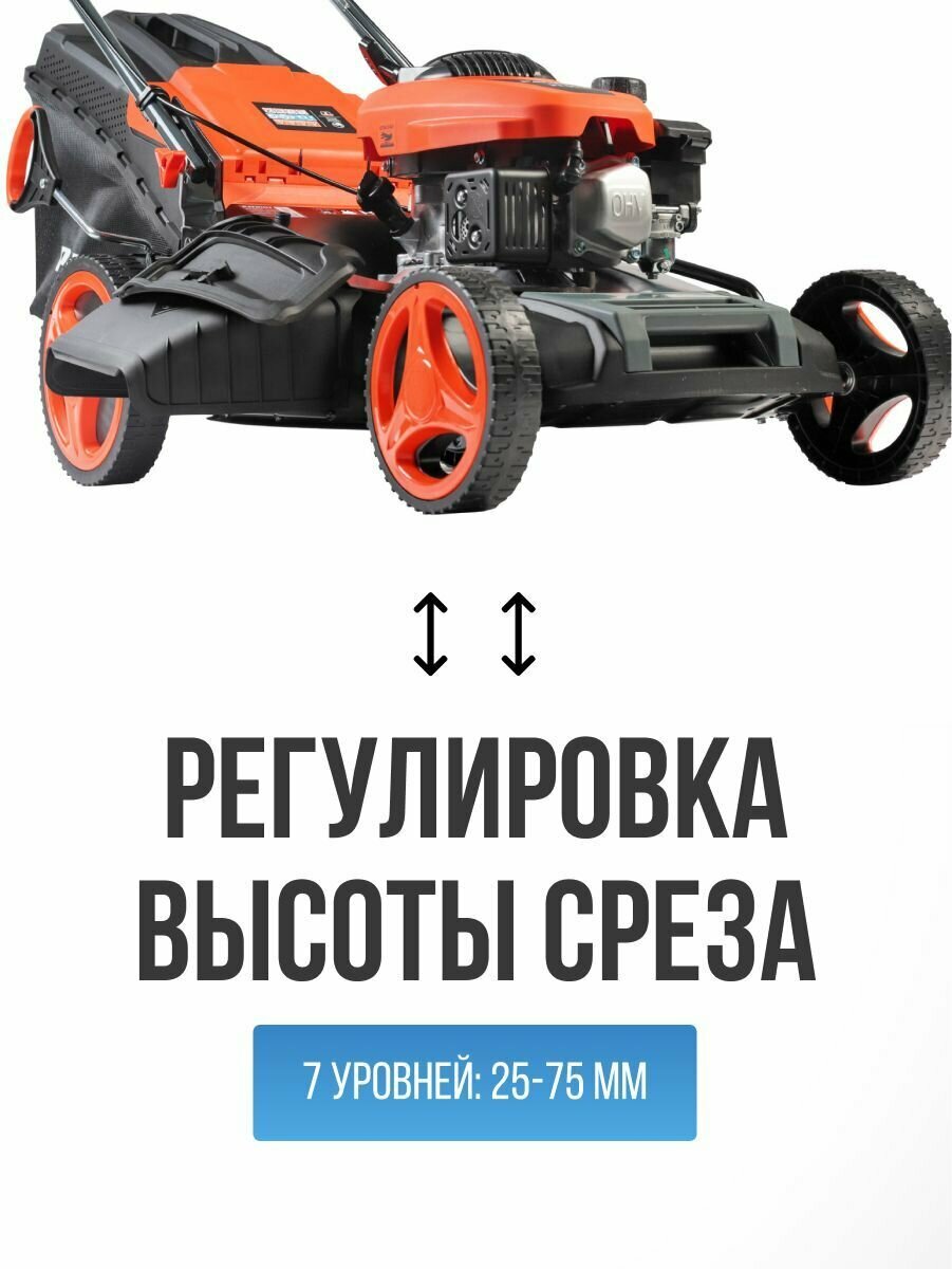 | Дополнительные функции | плавная регулировка скорости движения / регулировка высоты скашивания |