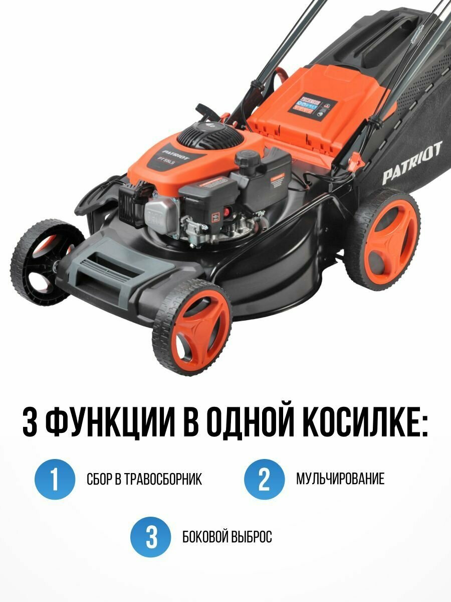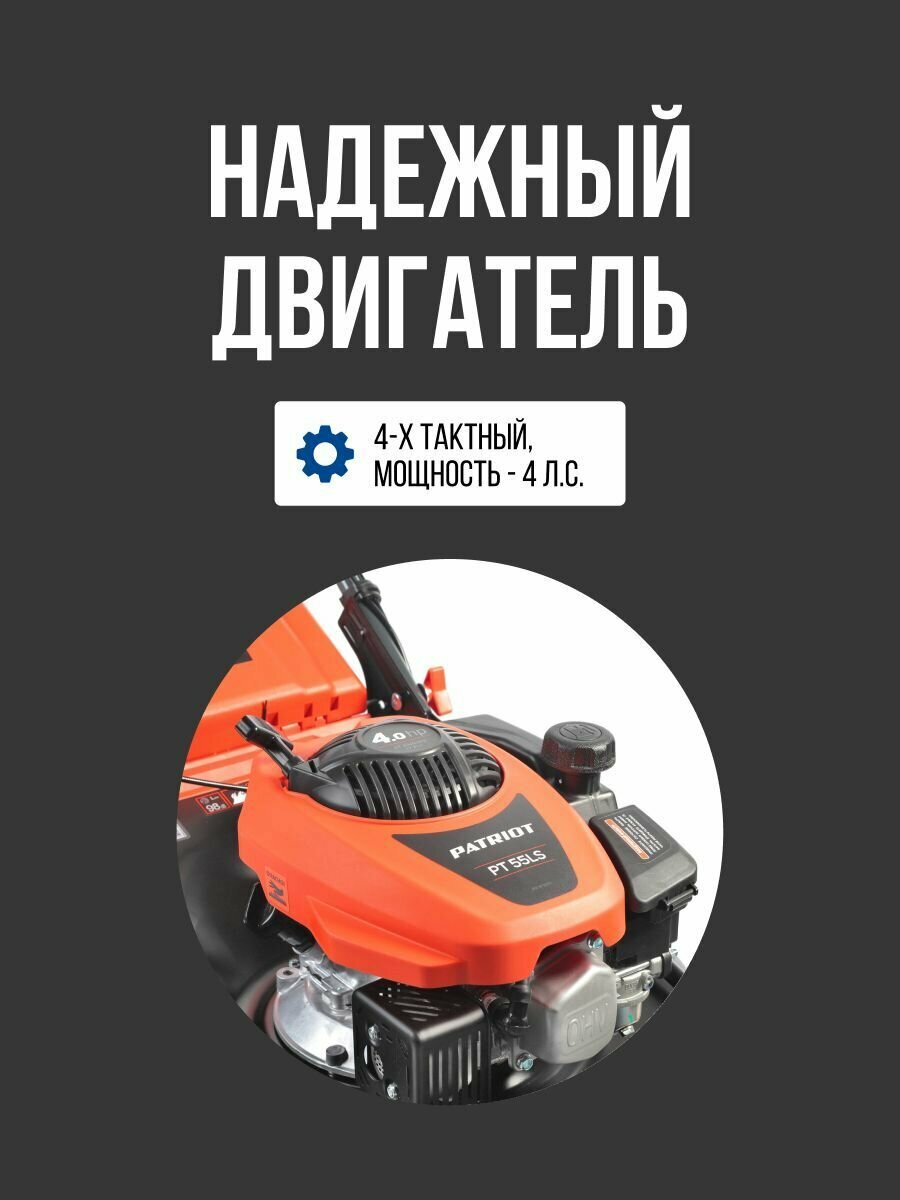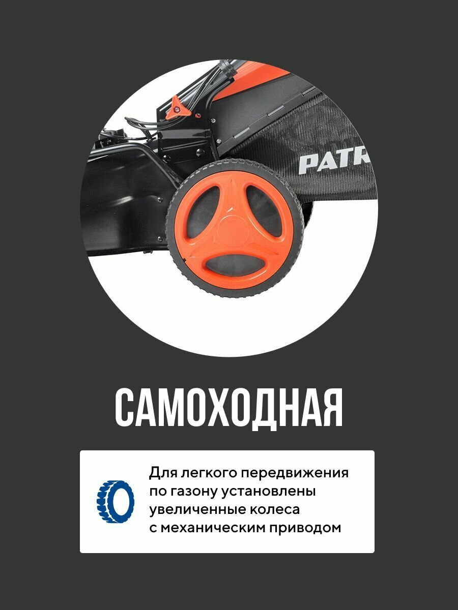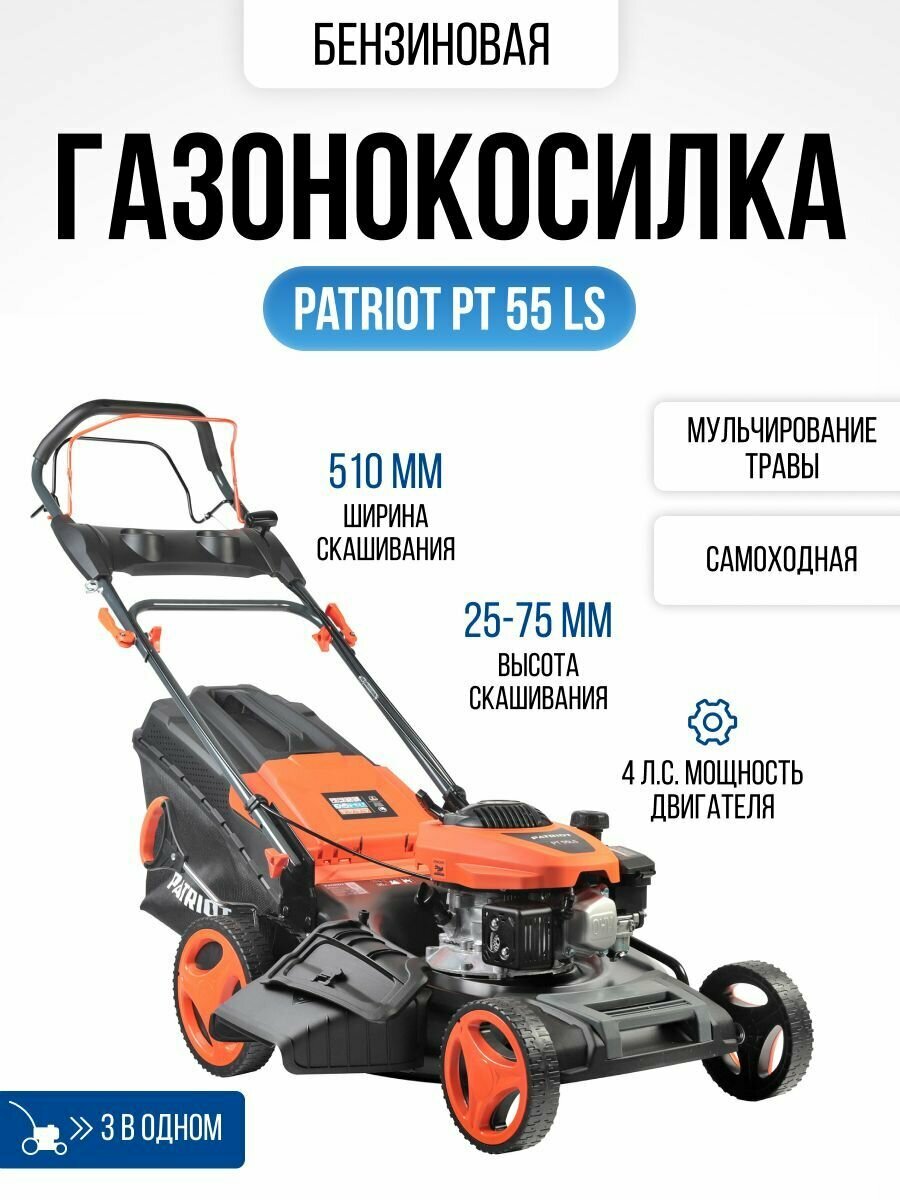 Газонокосилка бензиновая самоходная PATRIOT PT 55LS, нож 51см, 4 л.с. 28кг садовая техника для дома и дачи, косилка для травы и газона
