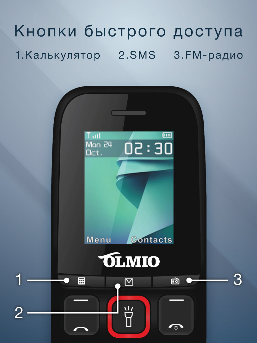 Кнопочный телефон Olmio A15 с FM и Bluetooth, синий