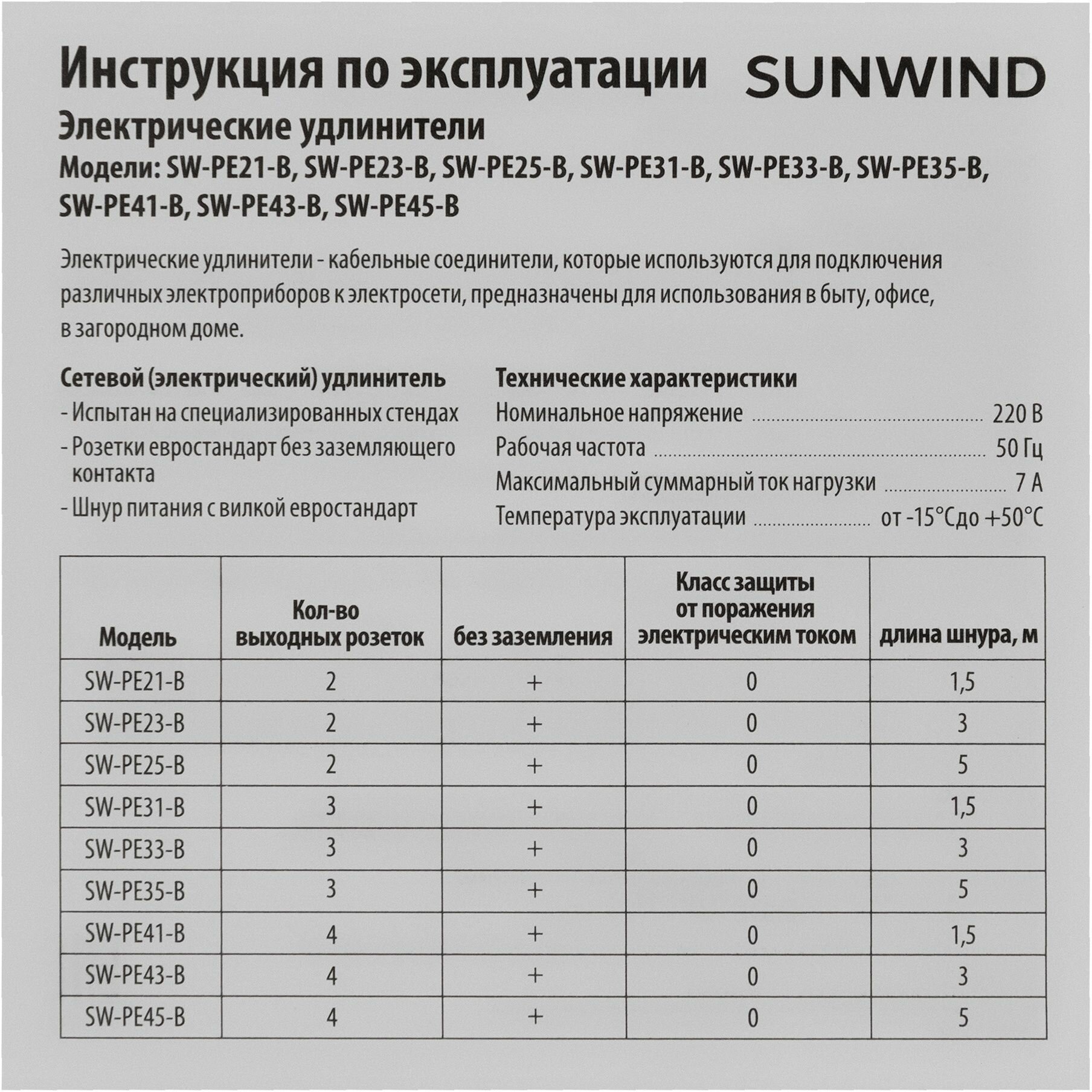 Купить Сетевой удлинитель SunWind SW-PE45-B, 5м, черный