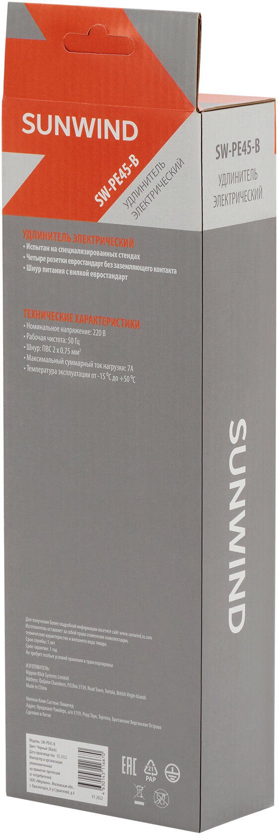 Сетевой удлинитель SunWind SW-PE45-B, черный