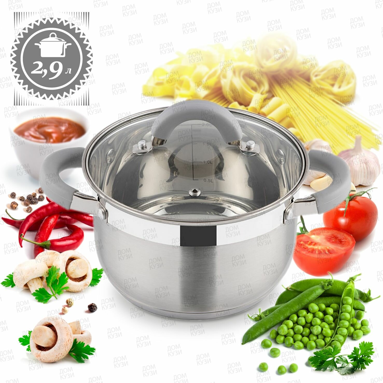 Кастрюля из нержавеющей стали 2,9 литра со стеклянной крышкой для всех видов плит