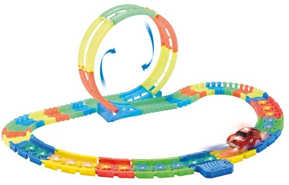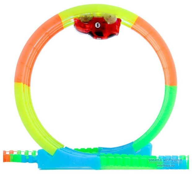1toy гибкий трек LED со светодиодными лампами,81 дет.(21 дет.c LED), люминисцентный, мёртвая петля, 1 машинка с 5 ламп.