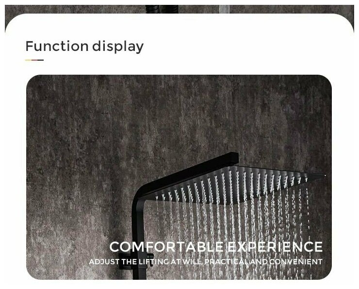 | Комплектация | смеситель 1 шт / верхний душ 1 шт / душевая штанга 1 шт / ручной душ 1 шт / душевой шланг 1 шт / держатель ручного душа 1шт |