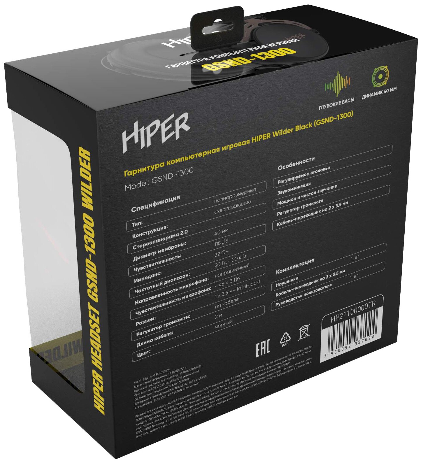 Гарнитура HIPER GSND-1300 черная, стерео, 40мм, mini-jack 3.5мм, регулировка оголовья, кабель 2м интересное: