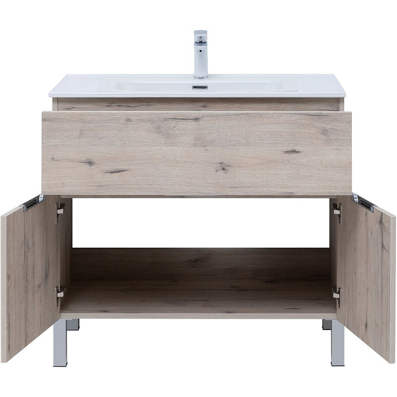 Тумба под раковину Aquanet Алвита New 90 1 ящик, 2 дверцы, дуб веллингтон белый