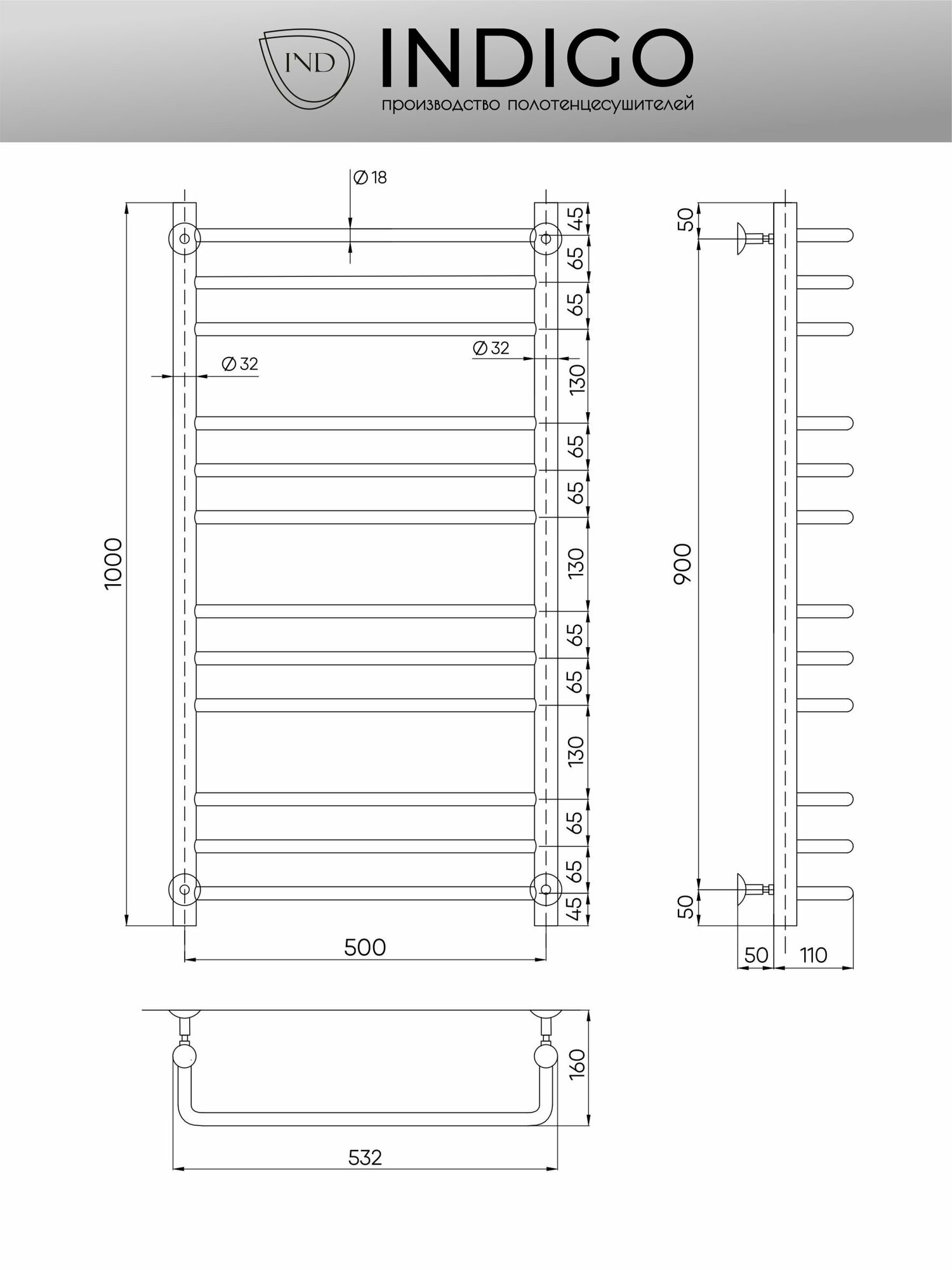 Полотенцесушитель водяной Brace без полки 100/50 (Полированный) INDIGO интересное: