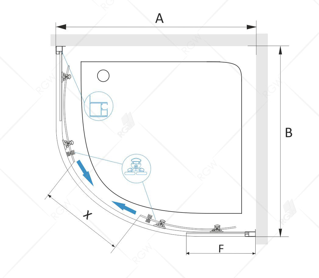Душевой уголок RGW 90х90х185 см CL-54 Полукруг, Хром, Прозрачное, 5 мм (32095499-11)