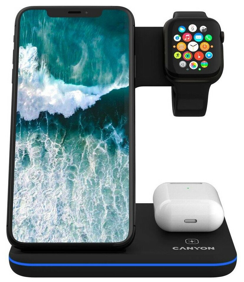 Беспроводное зарядное устройство CANYON WS-303 3в1 Черный
