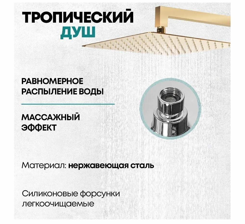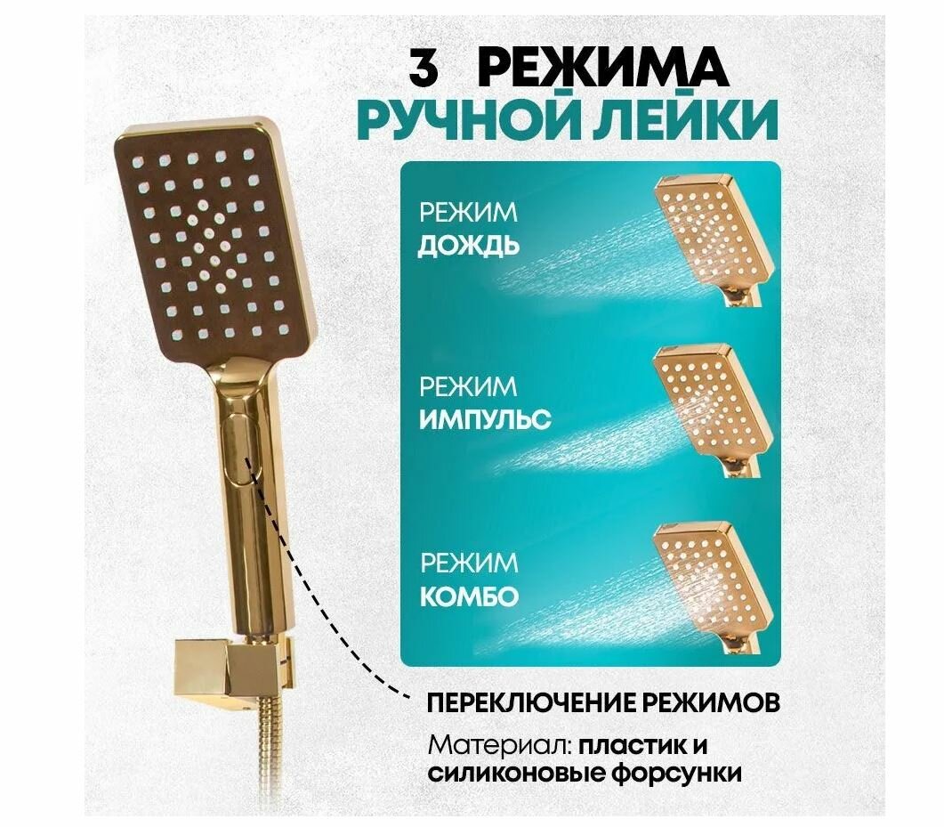| Режимы | массажная струя / мягкая струя / смешанная струя / тропический дождь |
