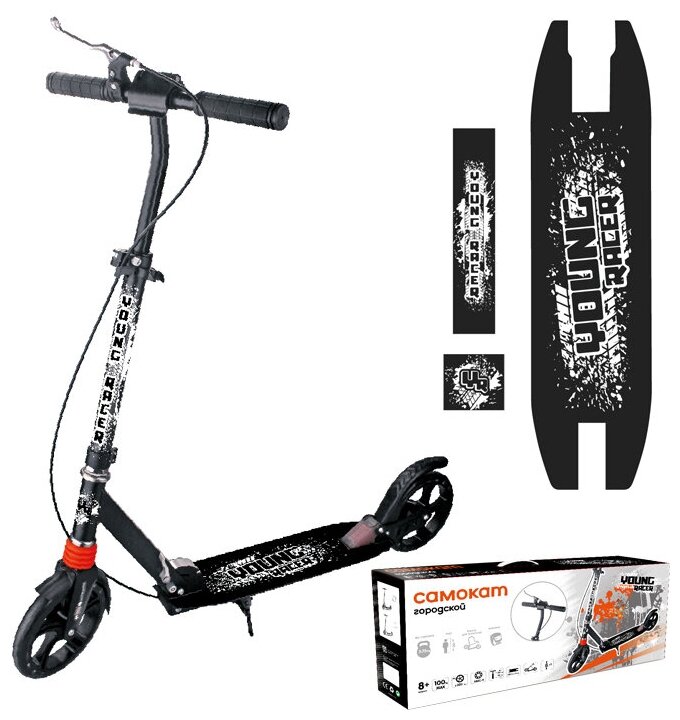 Купить Самокат 2-х кол. черный 200мм KM-895-2 Young Racer до 100кг + фонарик Новый ОПТ