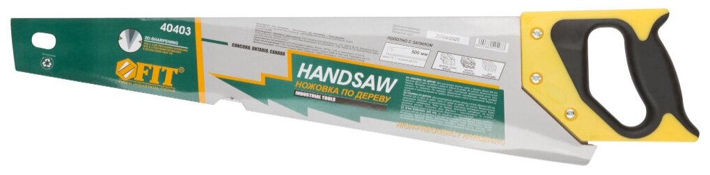 Ножовка по дереву, крупный кален.зуб 3 ТPI с запилом 7 ТPI, 2D заточка, пласт.прорезинен.ручка 500 мм FIT 40403