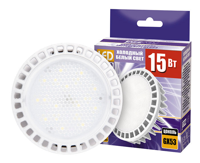 Лампа светодиодная LED 15Вт GX53 холодный белый матовая | код. 2855466 | JazzWay ( 1шт. )