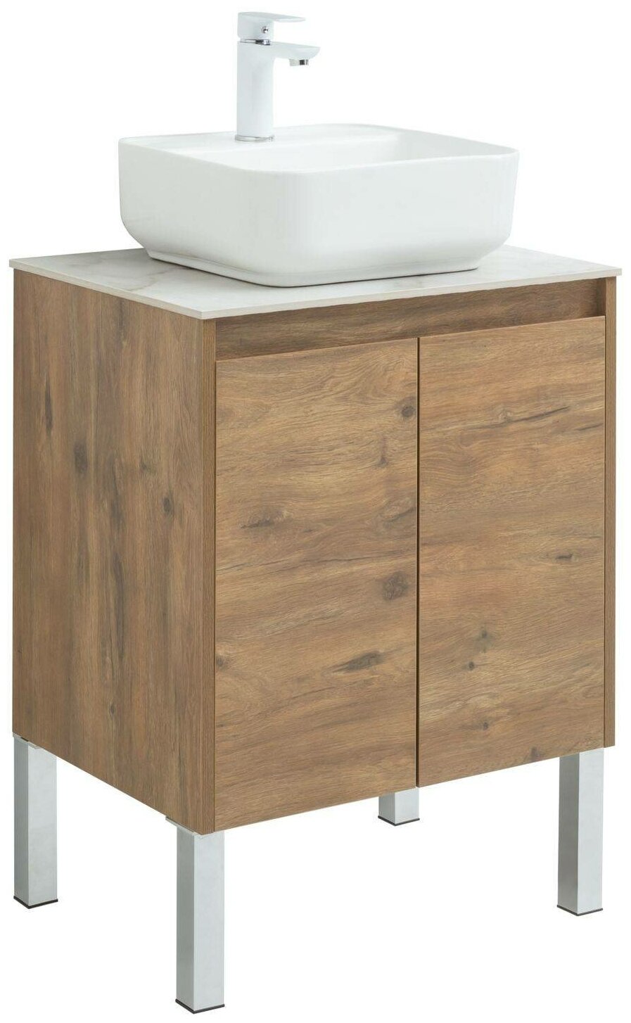Тумба с раковиной Алвита New 60 2 дверцы подвесная дуб веллингтон белый