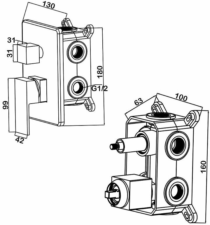 Смеситель встраиваемый подключение на 3 выхода в монтажном боксе Swedbe Platta